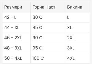 Таблицата с размерите може да служи за ориентир,но не е напълно точна,тъй като размерът на банският костюм зависи и от конкретния модел.