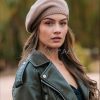 Дамска плетена барета.Състав ,87% акрил, ,13%полиамид.Има втъкани тънки нишки ламе.Актуално предложение за сезона.