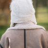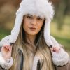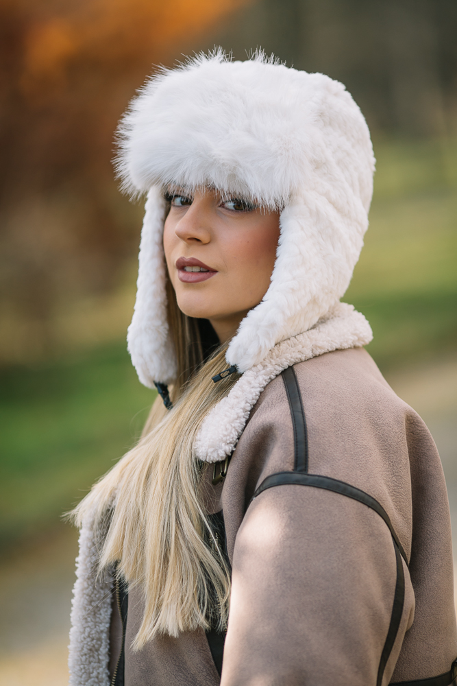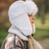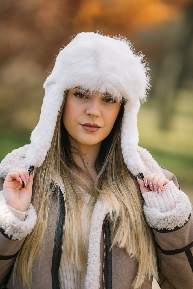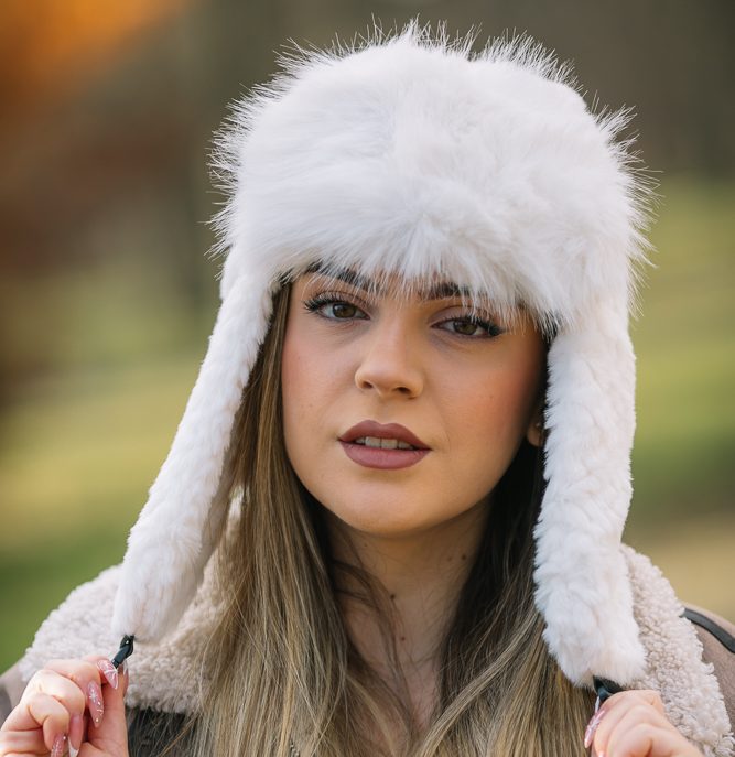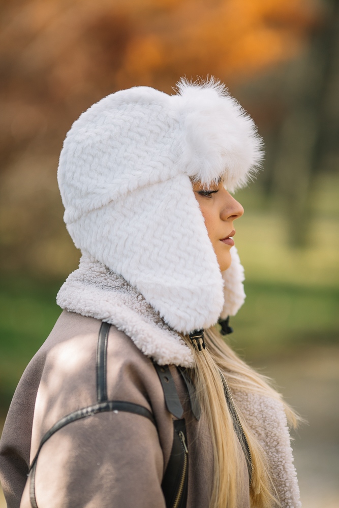 Топла дамска шапка тип ушанка.Състав 20% вълна 80% полиестер.Актуално предложение за сезона.