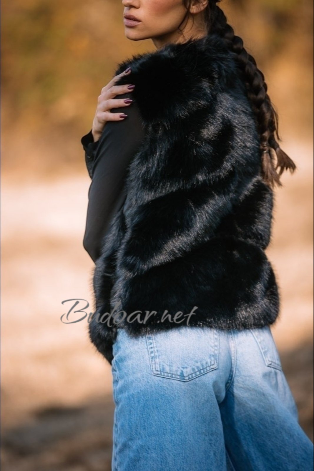 Дамски елек от еко косъм.Страхотна имитация на естествен косъм.Състав 80%акрил и 20%полиестер.Моделът е малко по широк и по дълъг.