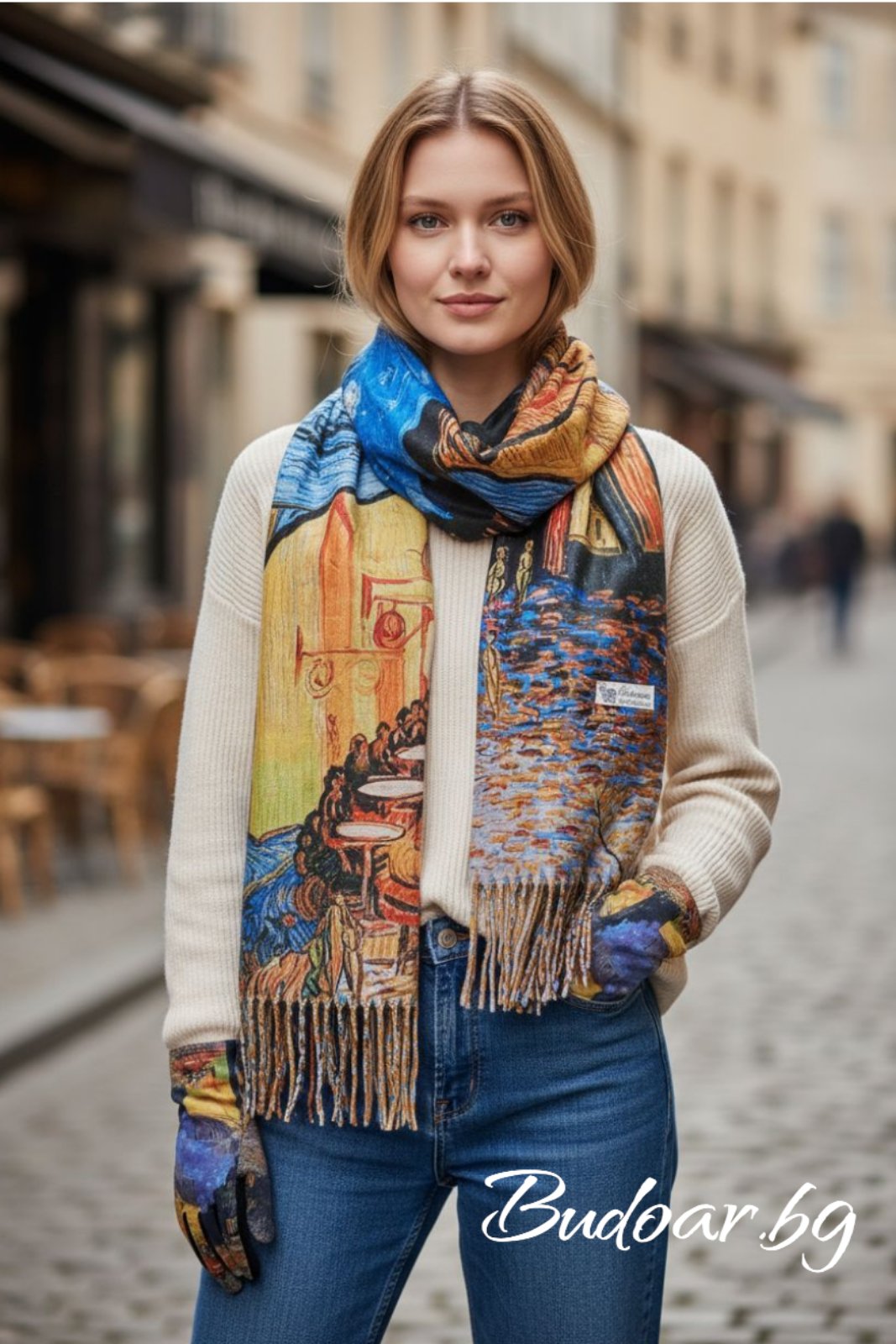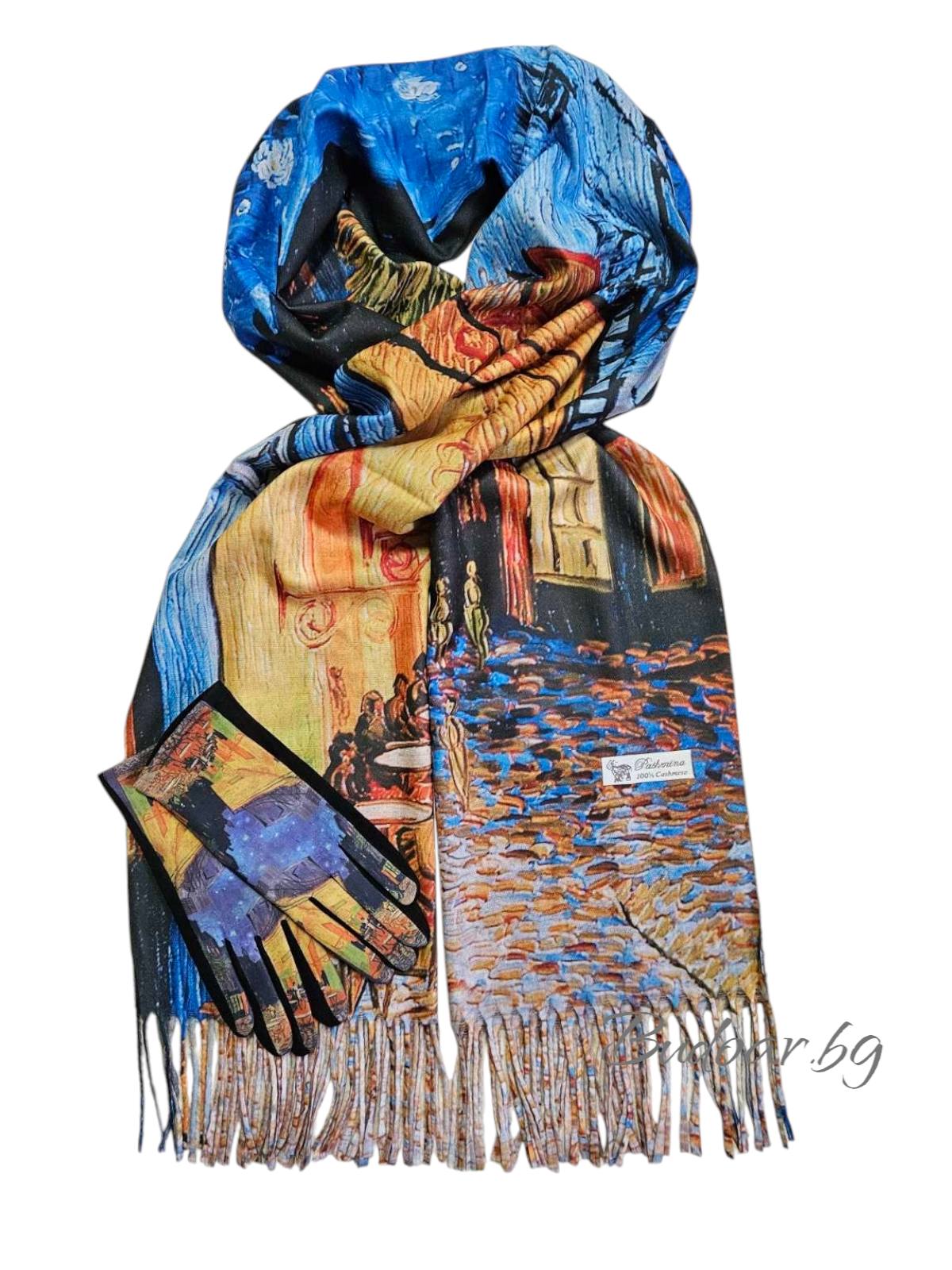 Красив цветен шал изработен от фин кашмир.Подходящ за есенно-зимния сезон.Размер 75/180 см.