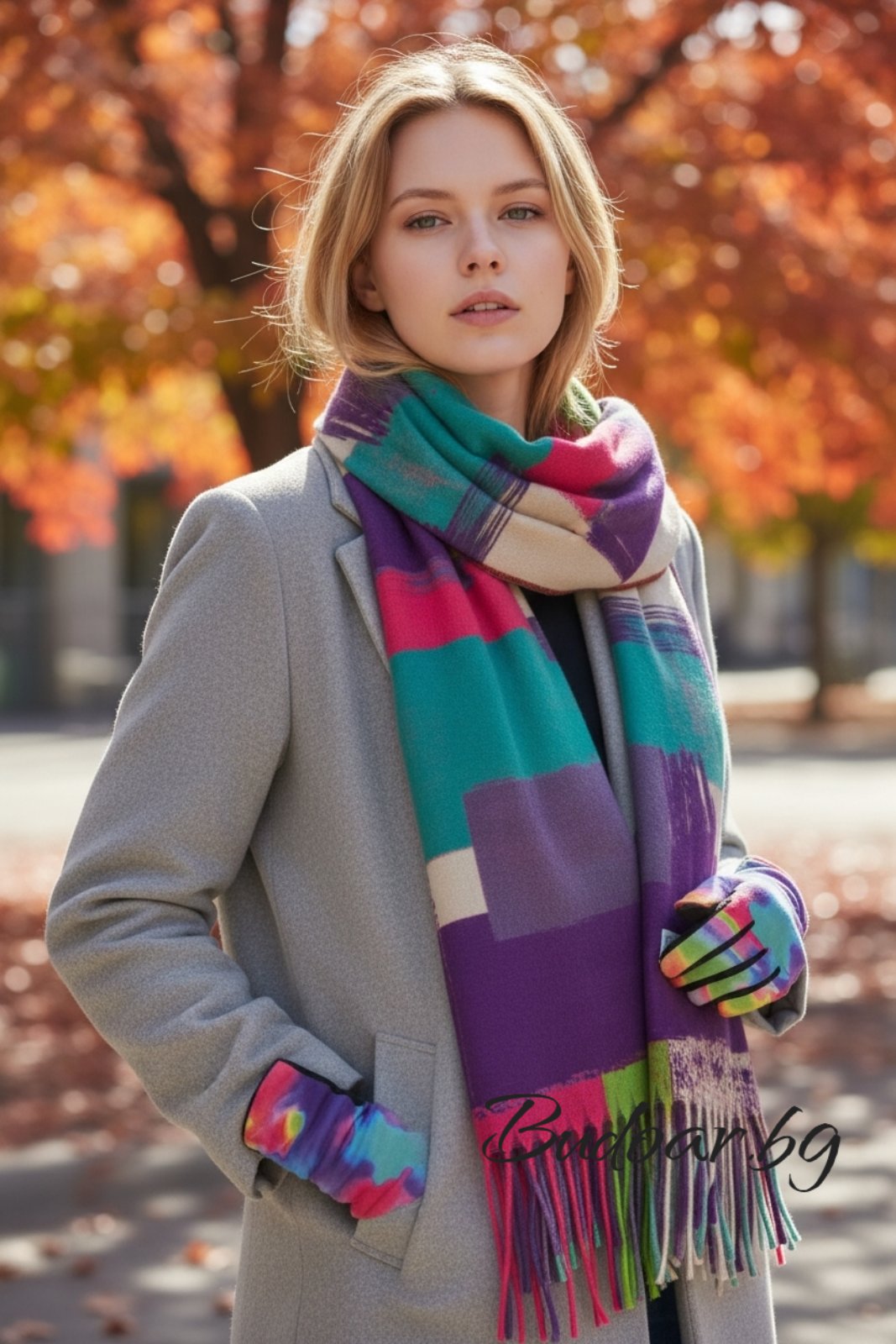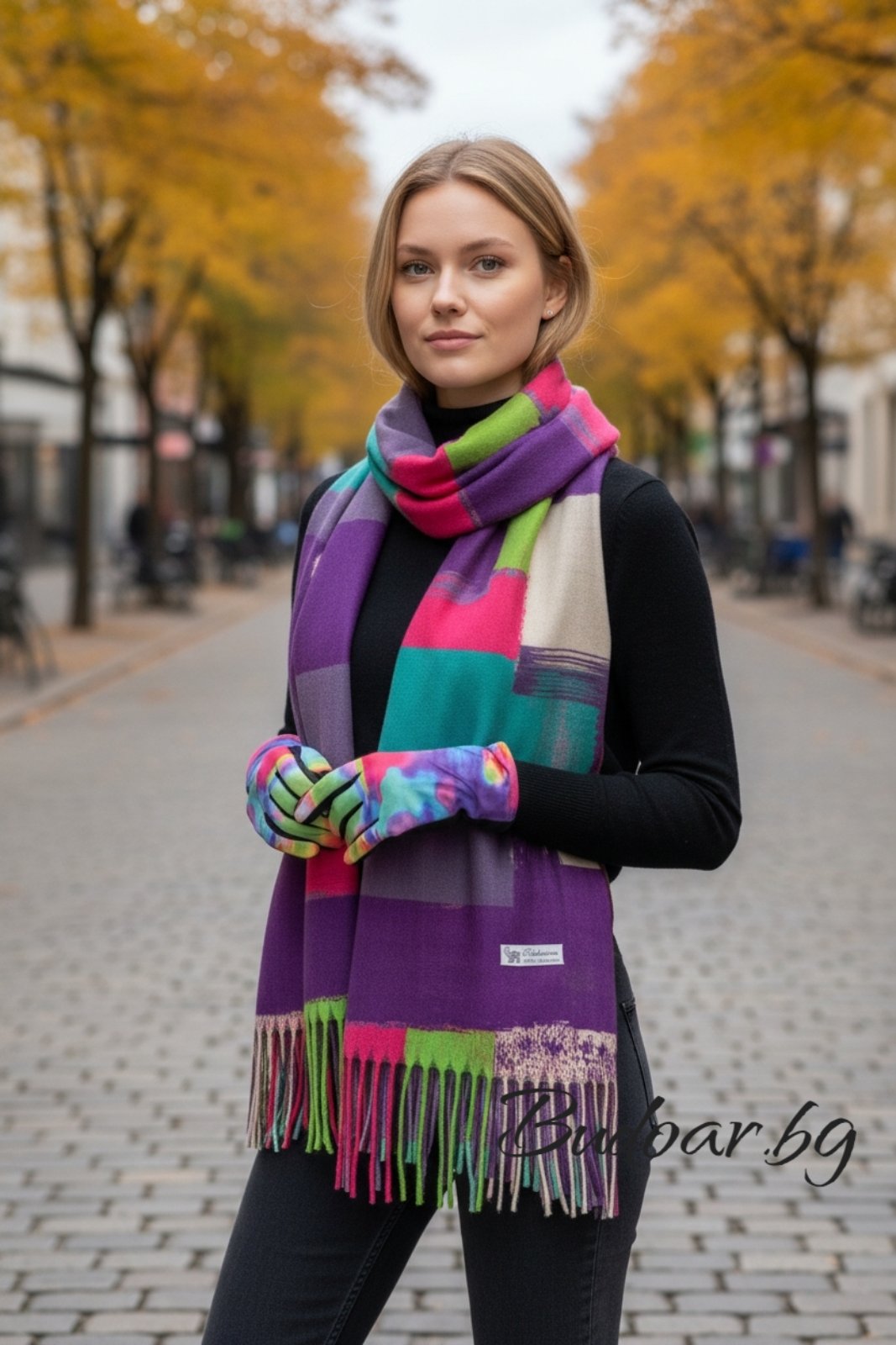 Красив цветен шал изработен от фин кашмир.Подходящ за есенно-зимния сезон.Размер 75/180 см.