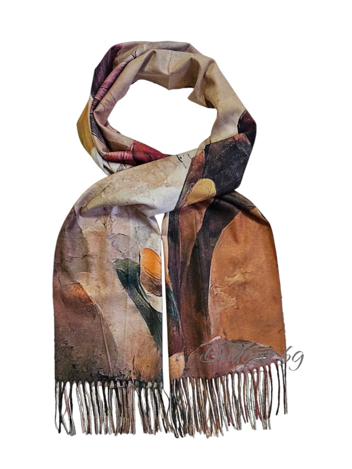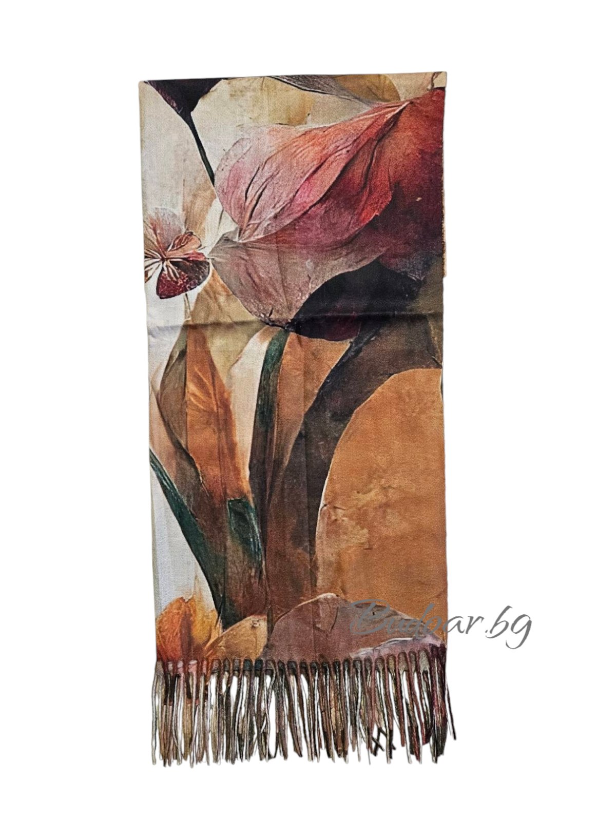 Красив кашмирен шал. Подходящ за есенно-зимния сезон.Състав 20%вълна,80%вискоза.Размер 75/180 см.