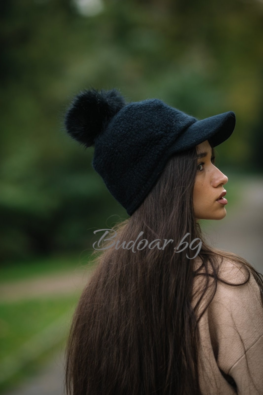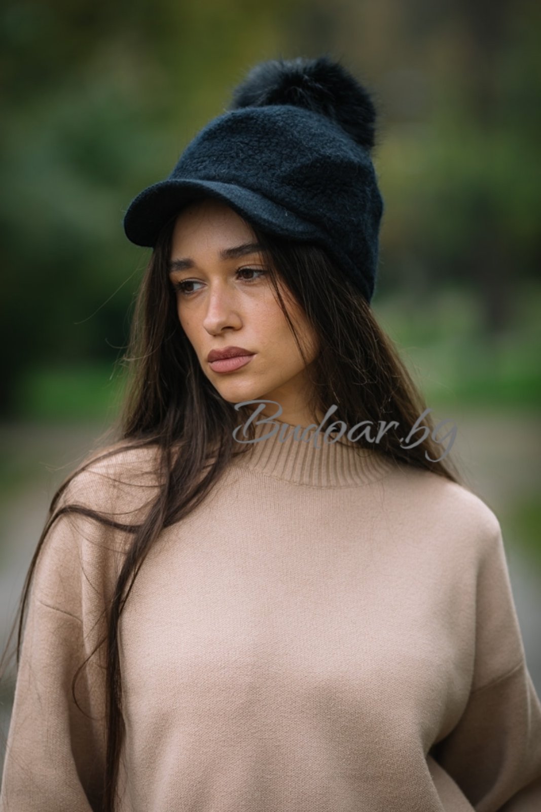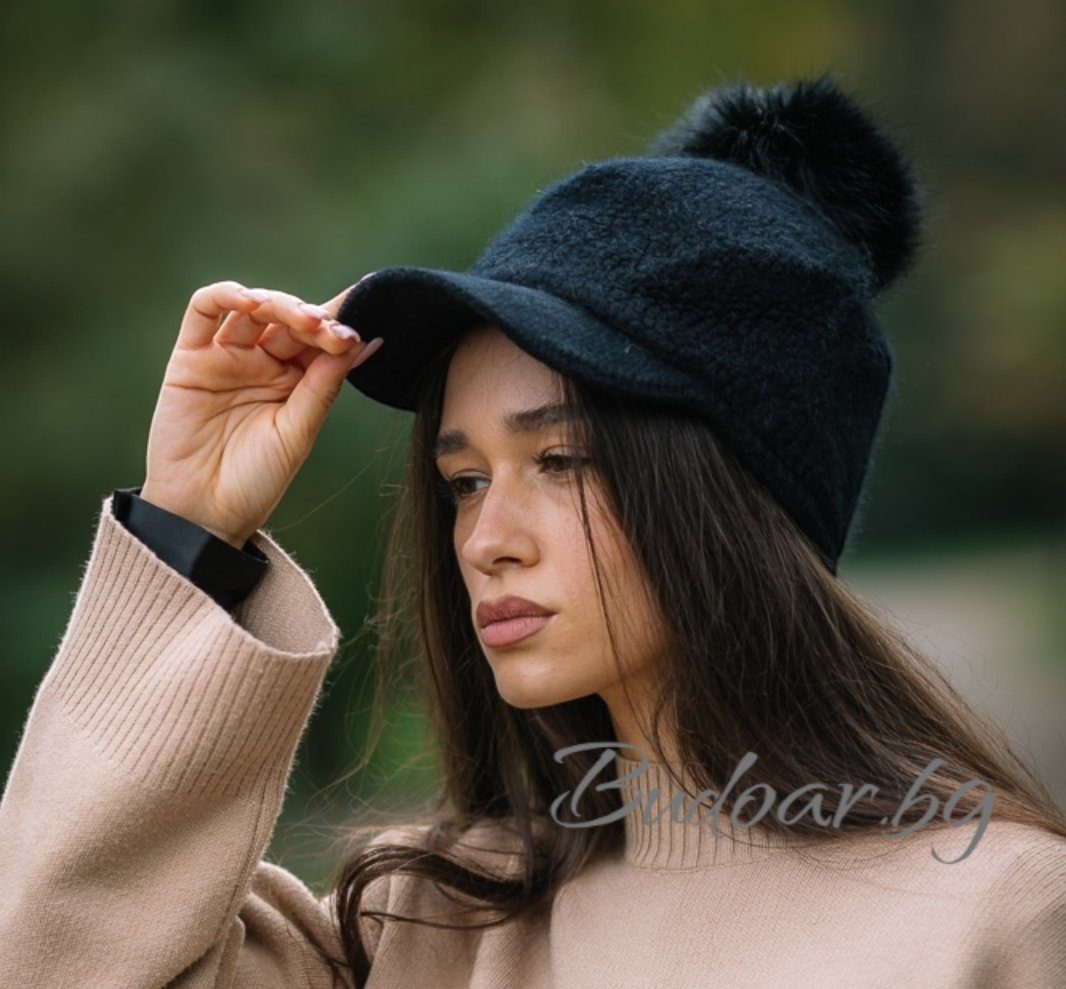 ♥ Дамски шапка с козирка и помпон