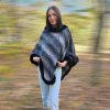 Дамско пончо с пух.Състав 50%вълна ,50% памук.Пончото е с универсален размер,подходящо за дами ,както със слаба фигура,така и с по едра.Обиколка на бюста до 130 см,дължина 81 см.