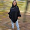 Дамско пончо с пух.Състав 50%вълна ,50% памук.Пончото е с универсален размер,подходящо за дами ,както със слаба фигура,така и с по едра.Обиколка на бюста до 130 см,дължина 81 см.