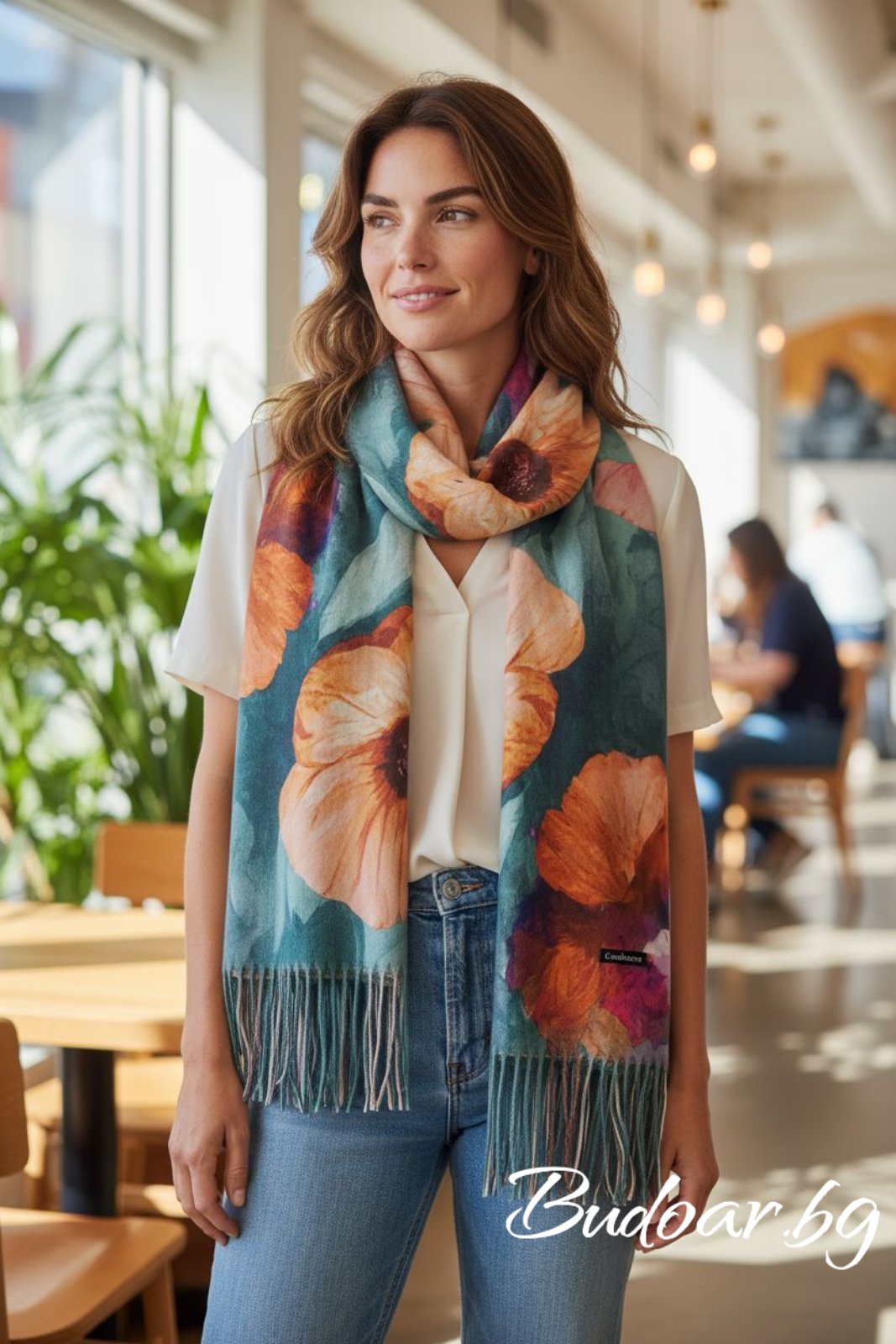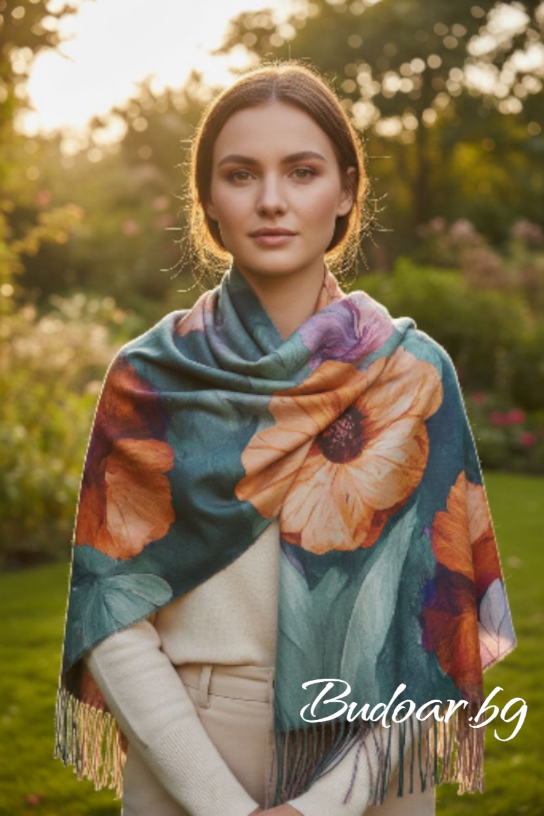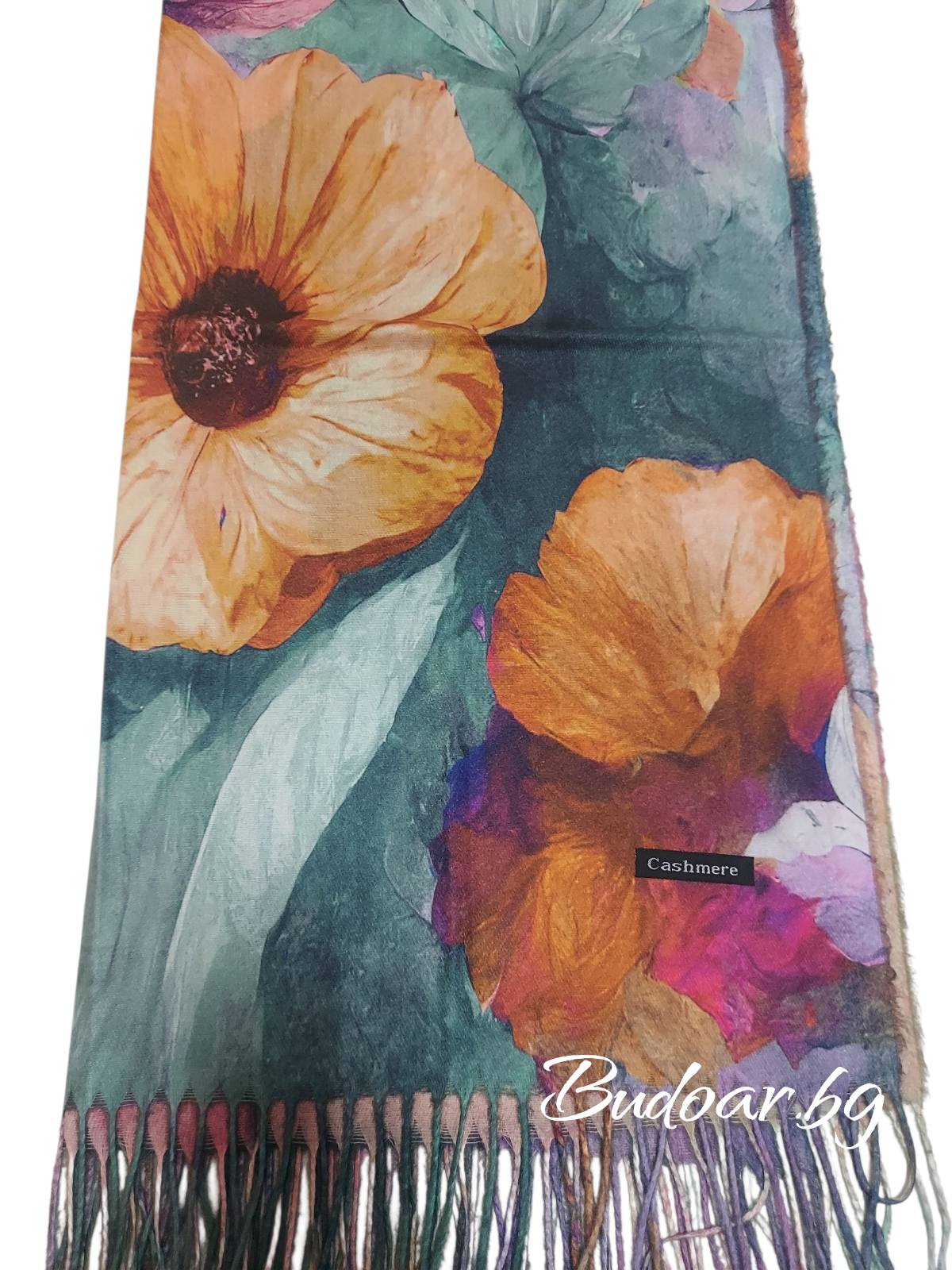 Красив цветен шал изработен от фин кашмир.Подходящ за есенно-зимния сезон.Размер 75/180 см.