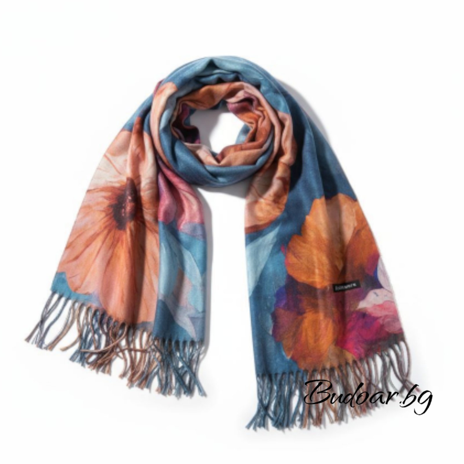 Красив цветен шал изработен от фин кашмир.Подходящ за есенно-зимния сезон.Размер 75/180 см.