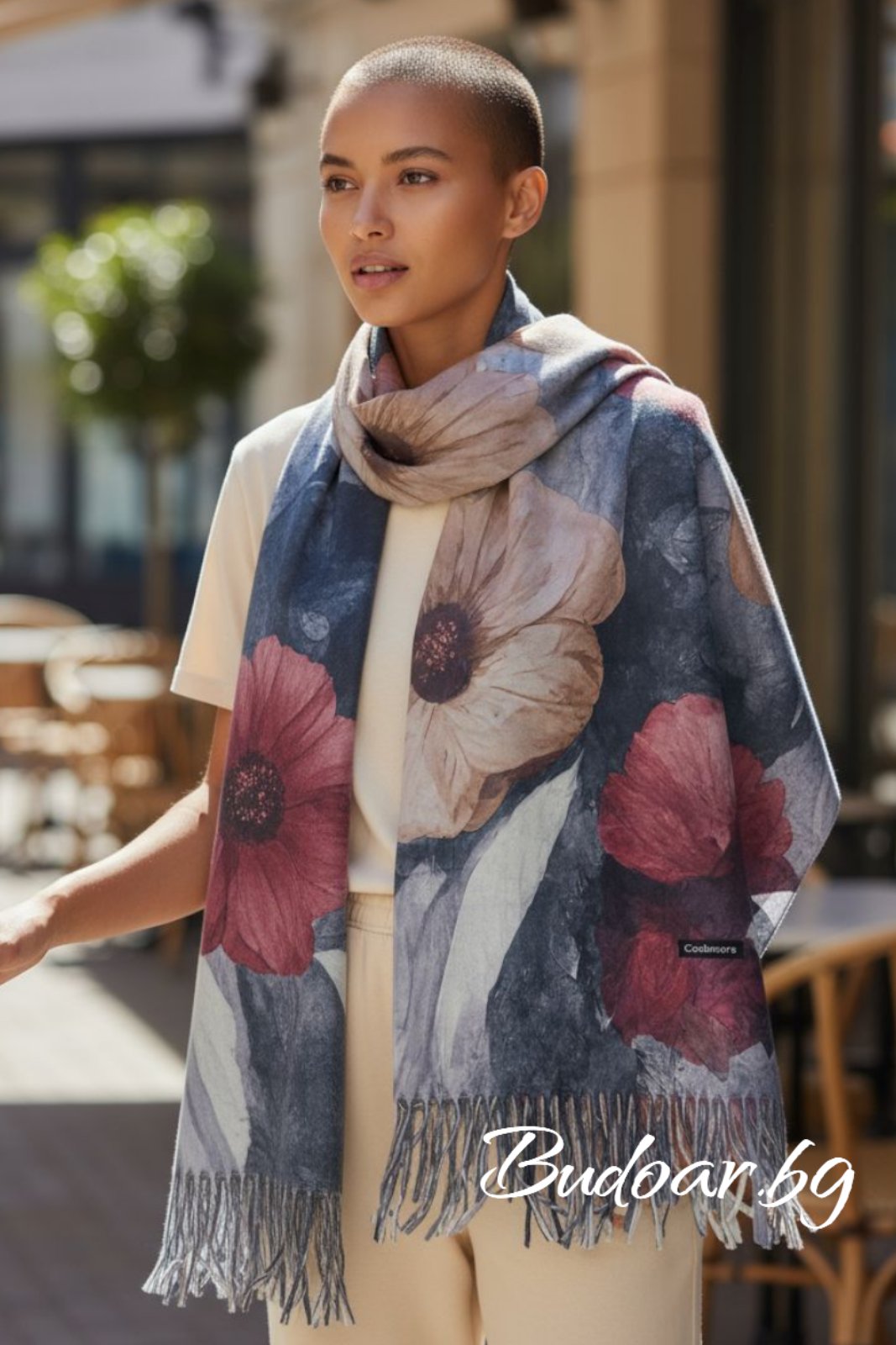 Красив цветен шал изработен от фин кашмир.Подходящ за есенно-зимния сезон.Размер 75/180 см.