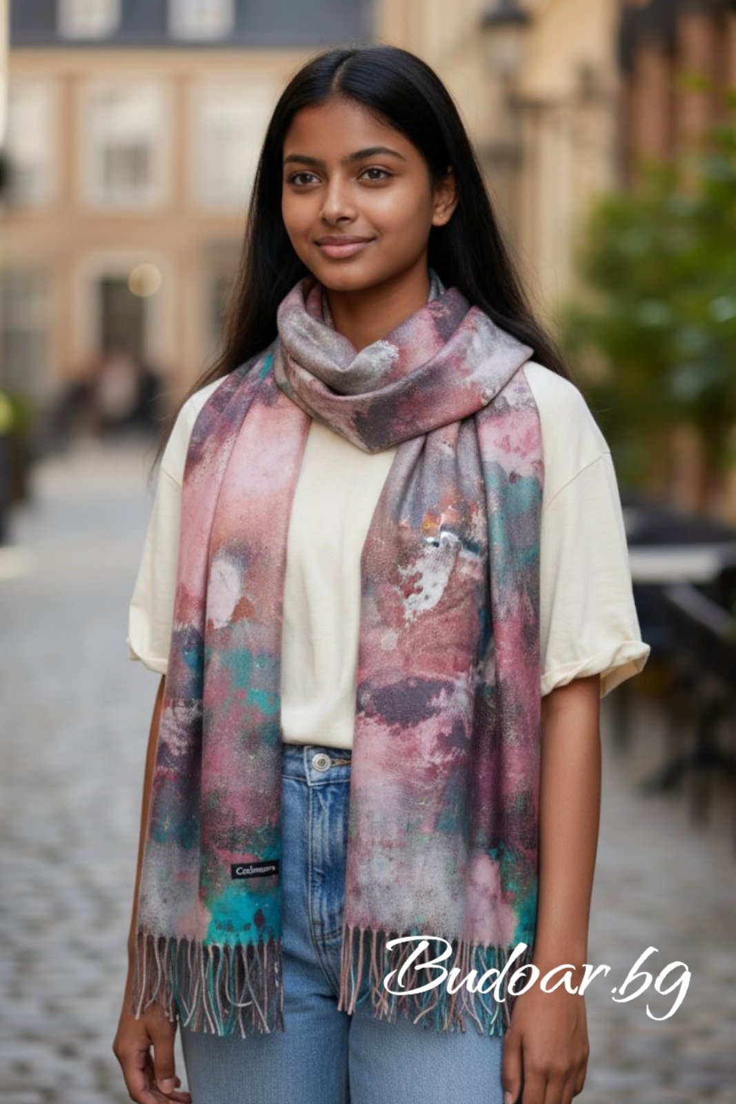 Красив цветен шал изработен от фин кашмир.Подходящ за есенно-зимния сезон.Размер 75/180 см.