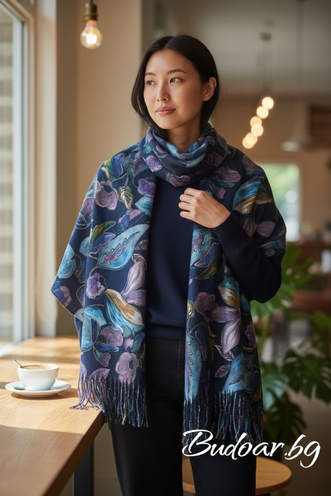 Красив цветен шал изработен от фин кашмир.Подходящ за есенно-зимния сезон.Размер 75/180 см.