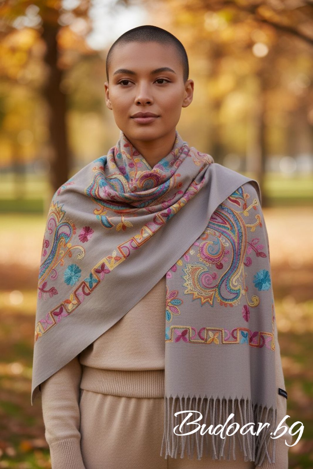 Красив цветен шал изработен от фин кашмир.Подходящ за есенно-зимния сезон.Размер 75/180 см.