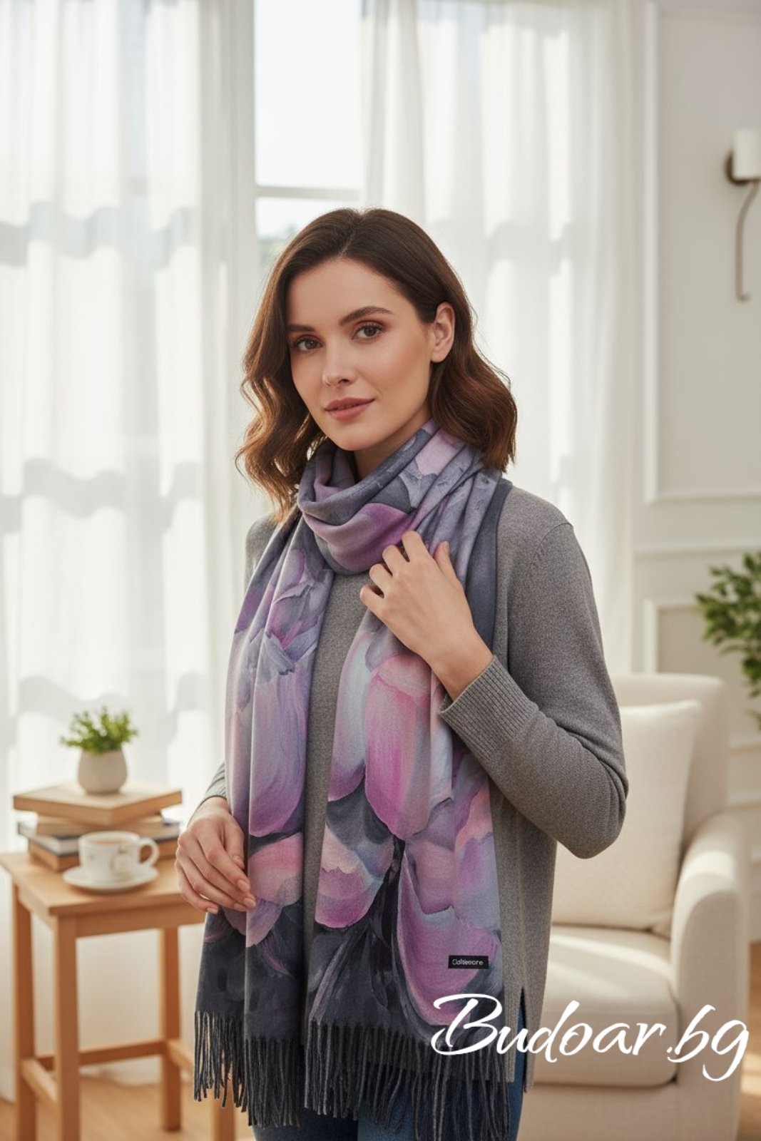 Красив цветен шал изработен от фин кашмир.Подходящ за есенно-зимния сезон.Размер 75/180 см.