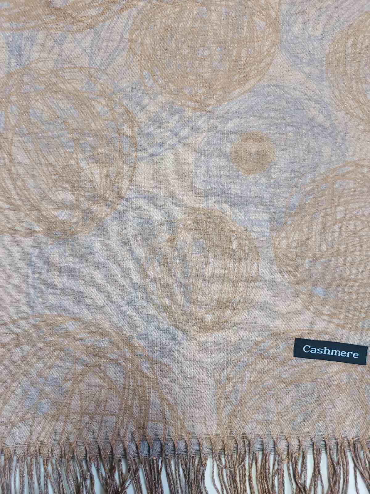 Красив цветен шал изработен от фин кашмир с вградени златни нишки.Подходящ за есенно-зимния сезон.Размер 75/180 см.