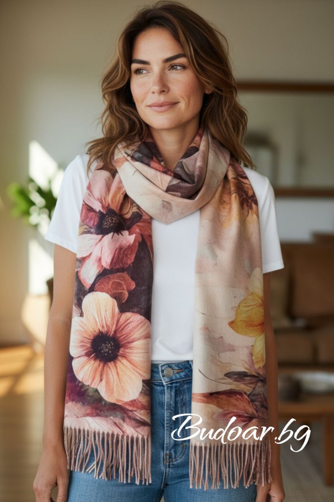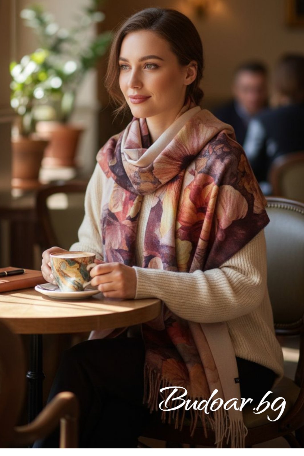 Красив цветен шал изработен от фин кашмир.Подходящ за есенно-зимния сезон.Размер 75/180 см.