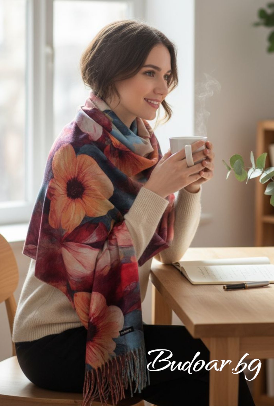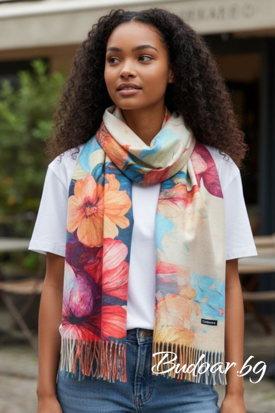 Красив цветен шал изработен от фин кашмир.Подходящ за есенно-зимния сезон.Размер 75/180 см.
