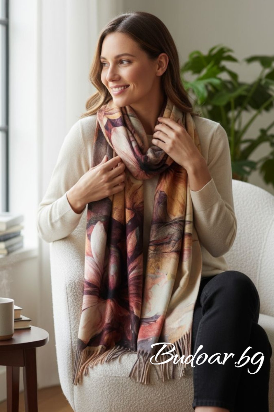 Красив цветен шал изработен от фин кашмир.Подходящ за есенно-зимния сезон.Размер 75/180 см.