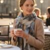 Красив цветен шал изработен от фин кашмир.Подходящ за есенно-зимния сезон.Размер 75/180 см.