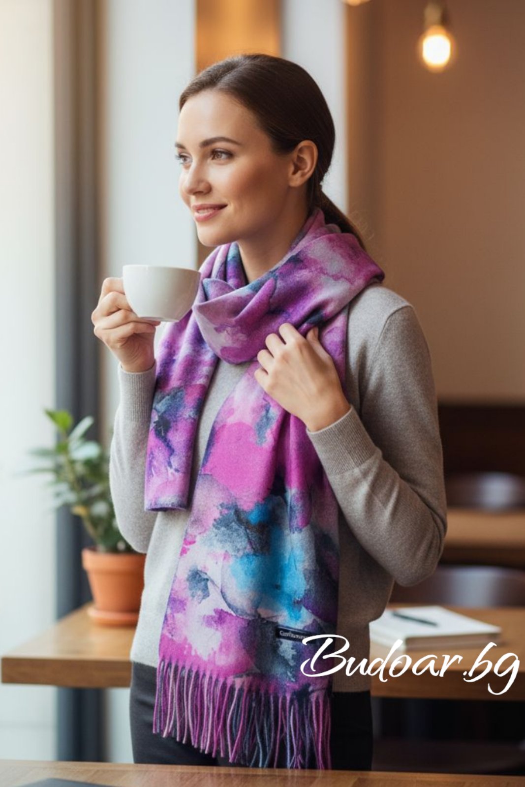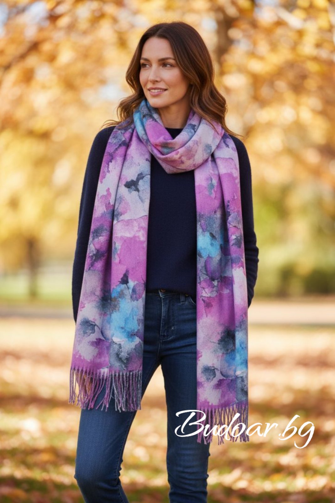 Красив цветен шал изработен от фин кашмир.Подходящ за есенно-зимния сезон.Размер 75/180 см.