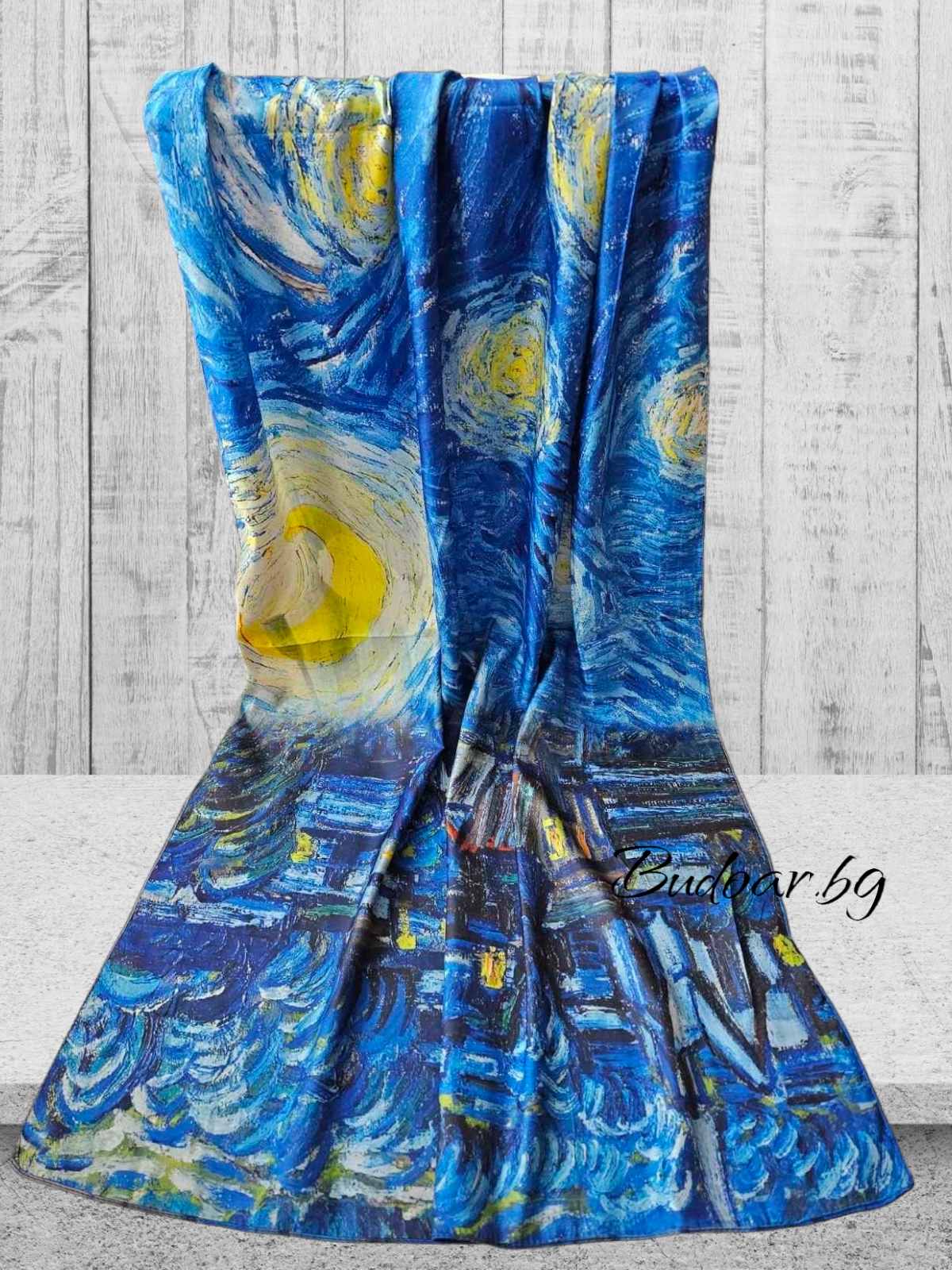 Елегантен копринен шал подходящ за пролетно летния сезон.Състав 100 % коприна.Размер 180/70 см.Шалът е двулицев.