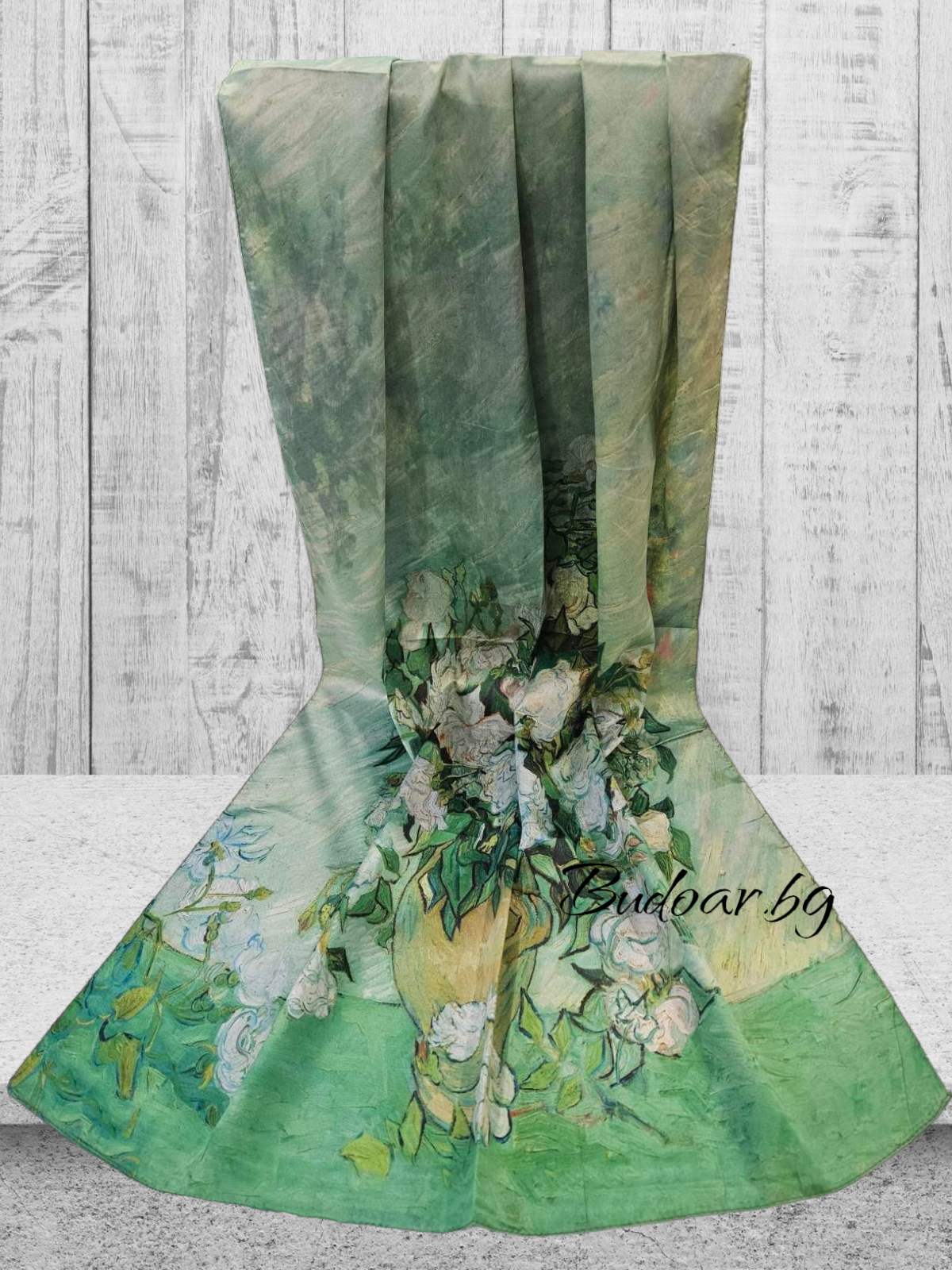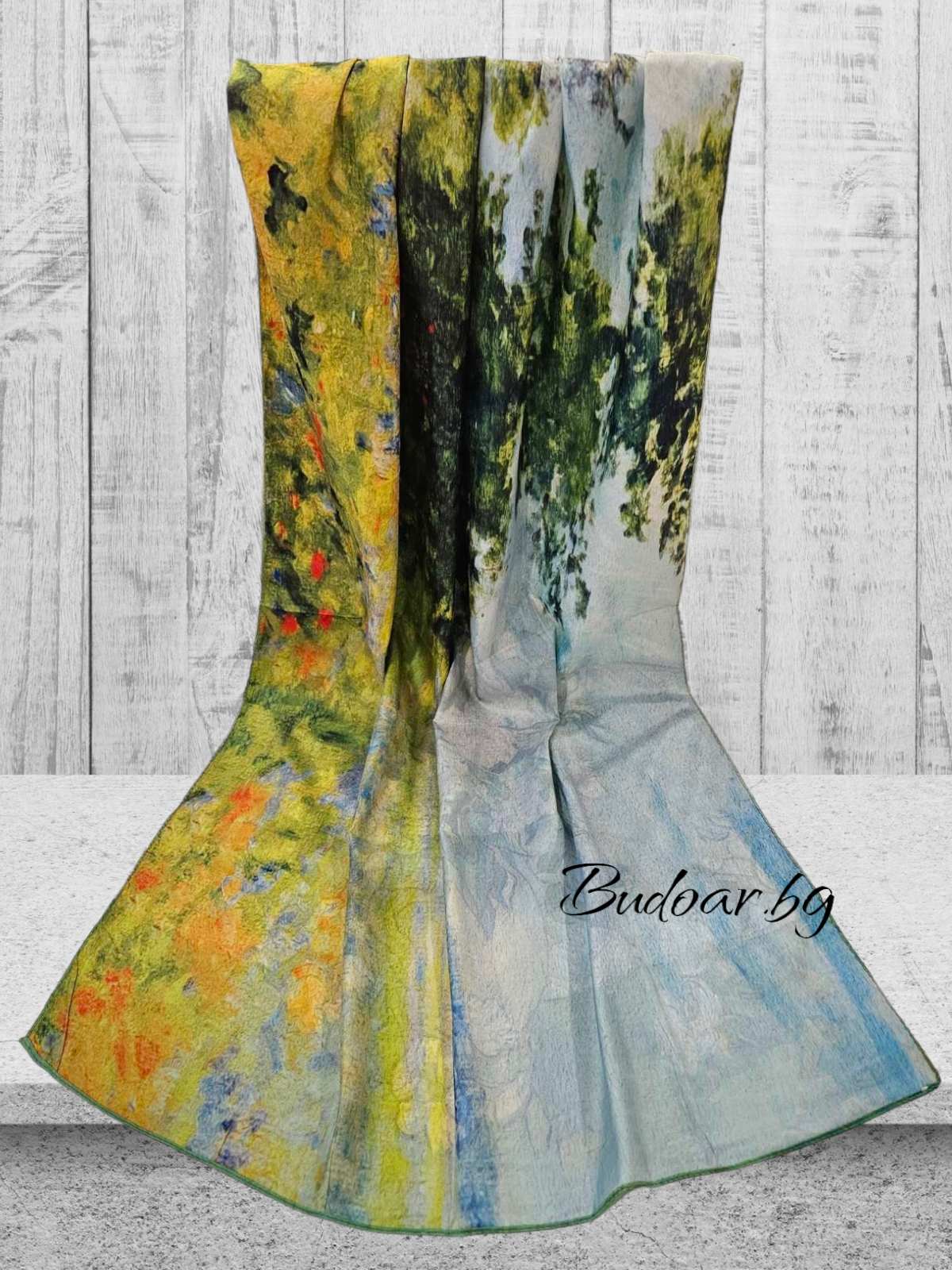 Елегантен копринен шал подходящ за пролетно летния сезон.Състав 100 % коприна.Размер 180/70 см.Шалът е двулицев.