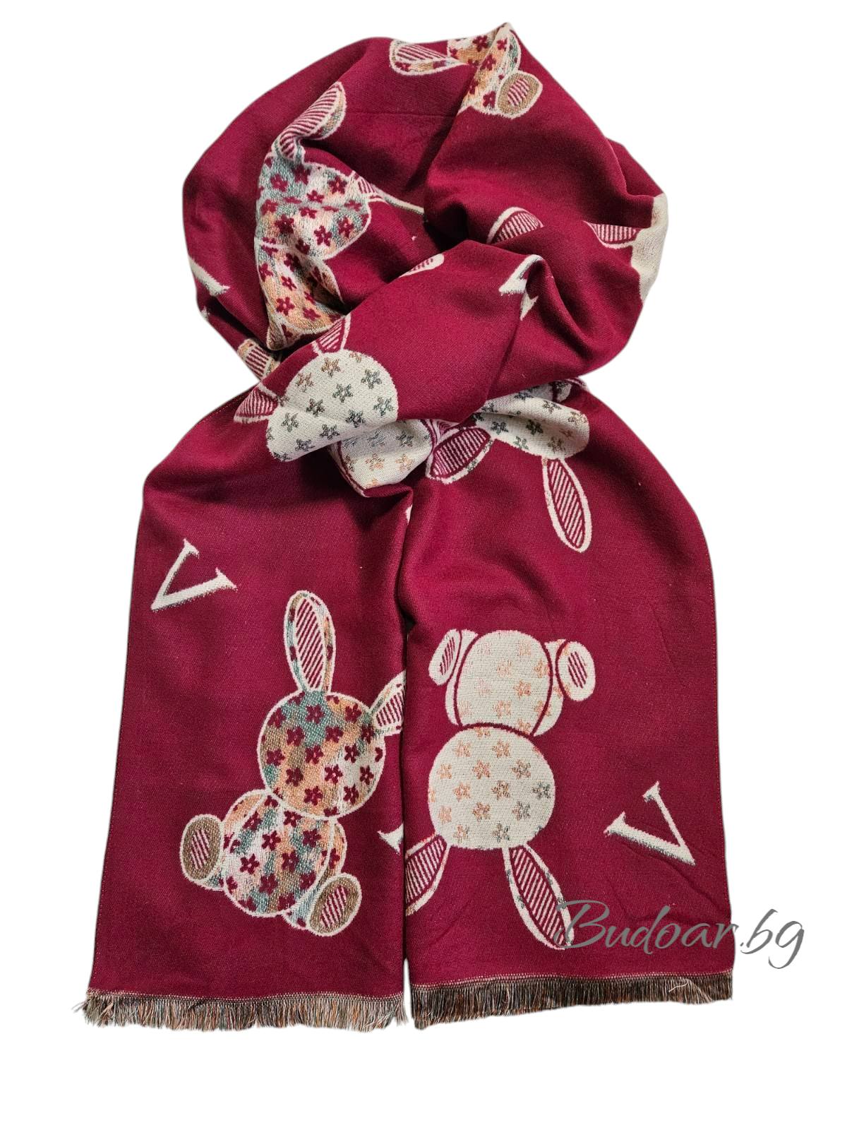 Топъл зимен шал изработен от вълна и вискоза.Шалът е от по-плътна материя. Подходящ за есенно-зимния сезон.Размер 65/180 см.