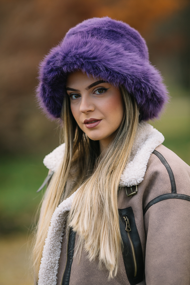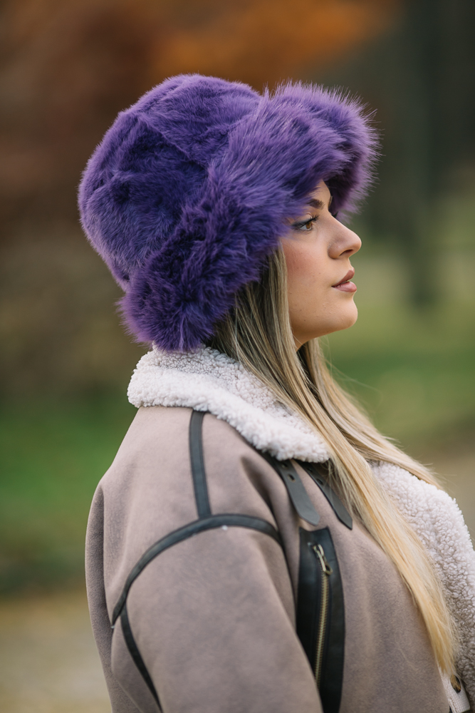 Топла дамска шапка с дълъг косъм.Състав 20% вълна 80% полиестер.Супер актуална за сезона. Страхотна имитация на естествен косъм.
