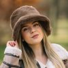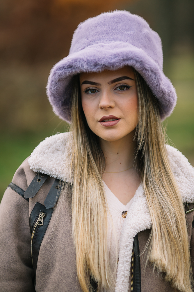 Топла дамска шапка с дълъг косъм.Състав 20% вълна 80% полиестер.Супер актуална за сезона. Страхотна имитация на естествен косъм.
